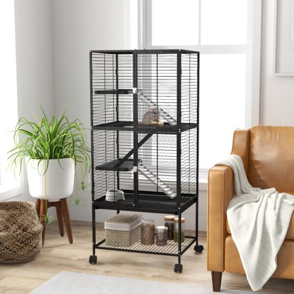 This four-tier small animal cage from Catface provides tons of free space for climbing, playing and exercising. With wheels, you can move the cage effortlessly, making it quick and easy to shift things around. Bring your pet with you to the next room and keep your animal buddy by your side in a portable design that’s big and spacious. From ferrets to squirrels to chinchillas, this cage will please many a pet, offering the fun heights they deserve in a multi-platform heaven.